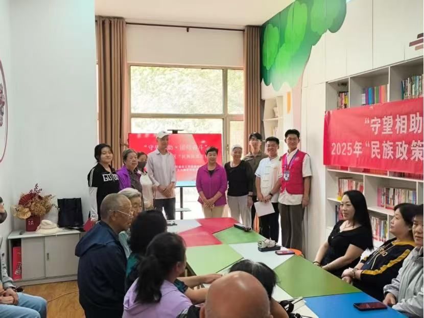 活动伊始,青年研习社成员通过精心设计的有奖问答环节,围绕《民族政策与法治思想》、《国家通用语言文字法》、《内蒙古自治区促进民族团结进步条例》等核心法规政策,与社区居民展开互动。现场气氛热烈,居民们踊跃抢答,在轻松愉快的氛围中深化了对民族政策的理解。