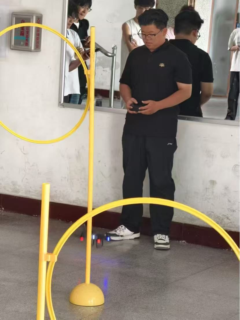 本次竞赛吸引了2024级各专业共五组选手。比赛精心设置了几大环节:理论知识讲解、场地试飞校准以及正式比赛。