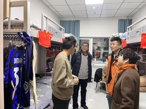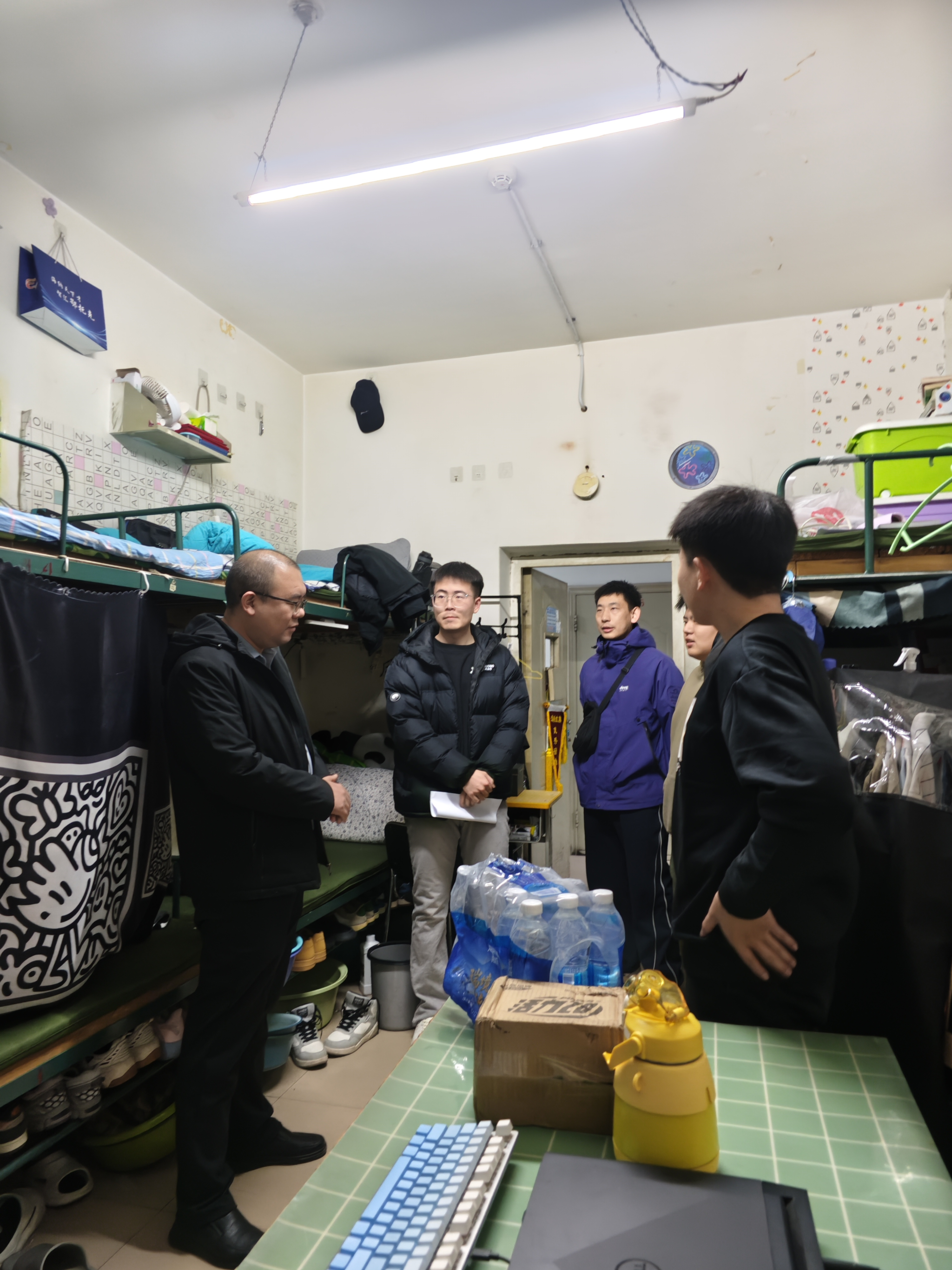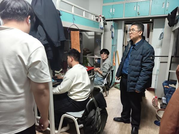 随后,球友会五位领导带队深入员工宿舍开展实地检查。院领导一行仔细查看宿舍环境卫生、安全用电、物品摆放等情况,与同学们亲切交流,详细了解大家的学习生活状态,对发现的问题现场提出整改意见,强调要牢固树立安全意识,共同营造整洁、文明、安全的宿舍环境。