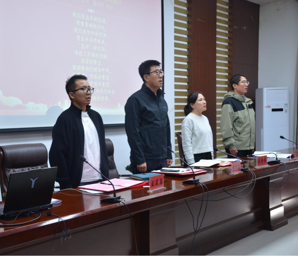 大会第一项:全体起立奏唱中国共产主义青年团团团歌,激昂旋律点燃现场氛围;
