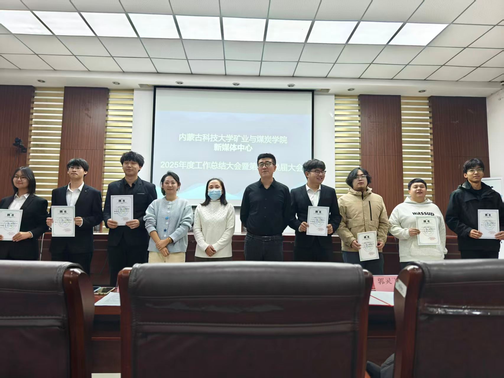会议的最后,全体成员与老师们并肩而立,快门按下的瞬间,定格了旧友的不舍、新人的期许,也定格了新媒体中心“薪火永相传”的崭新起点。未来,我们仍将以屏幕为窗、以文字为桥,继续做矿煤故事的记录者、球友会风采的传播者!